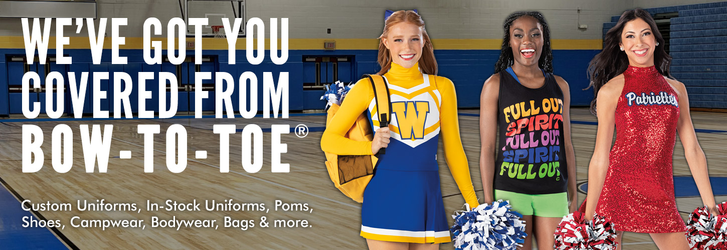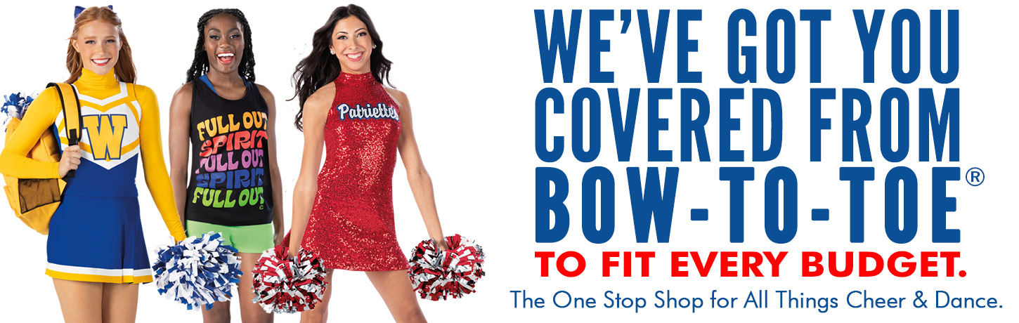 Cheerleading.com is a trusted leader in the cheer industry. As the top cheer uniform and accessories online store, we offer everything your squad needs — uniform packages, cheer poms, practice wear, cheer and dance shoes, hair bows, warmups, bags — all in one place. Whether you're outfitting a single athlete or an entire team, we've got you covered from Bow-to-Toe ®. Our exclusive designs and unmatched variety make it easy to stand out on the sidelines, the mat or the stage. Let's get your team performance-ready!