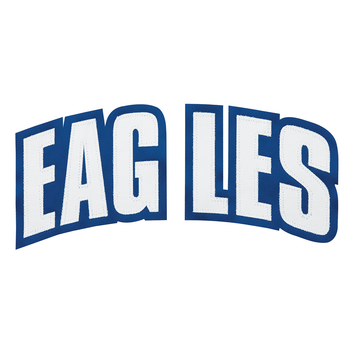 Made-to-order two-color tackle twill. This lettering style is available in all capital letters only. 13 character limit.