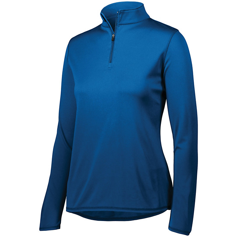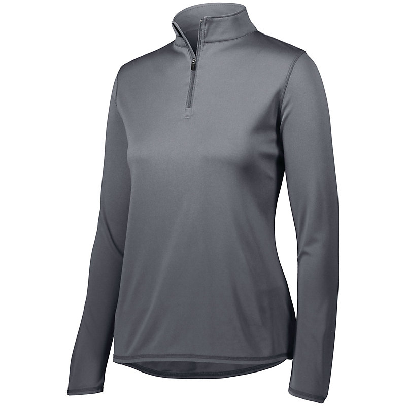 The Attain Featherweight Pullover is offered in a variety of colors and sizes, making it a great option for your entire team. The fabric is a very lightweight, unlined moisture-wicking 100% polyester, which will help to to keep you comfortable and dry during practice or performance. The fabric also features true hue technology™, which resists bleeding or fading. The pullover features a quarter-zip design and drop tail.