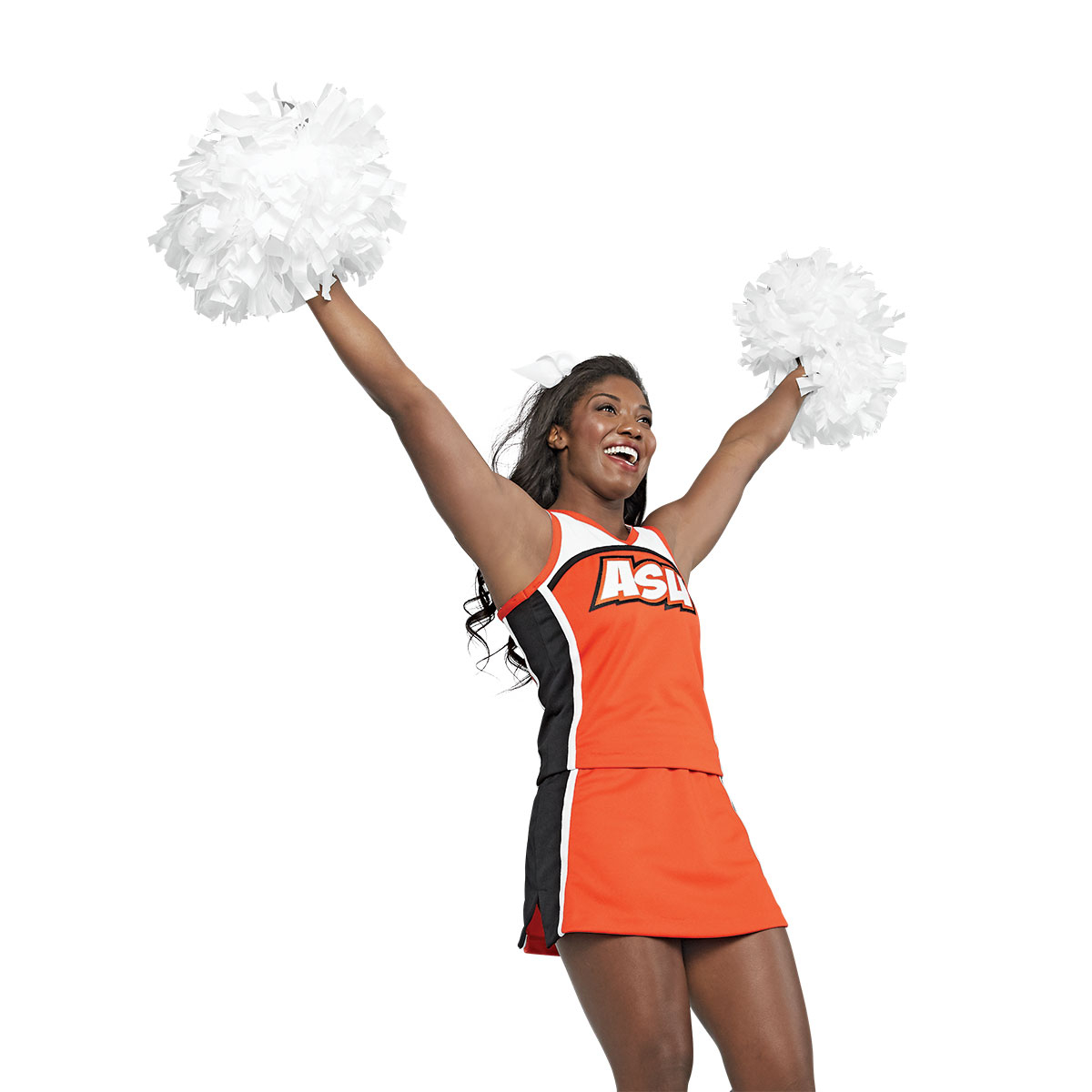V-neck shell with racer back design 21107B1H; elastic waist A-line skirt 1418EH1H. Price includes top and skirt; lettering priced seperately. Made-to-order items are not returnable or exchangeable.