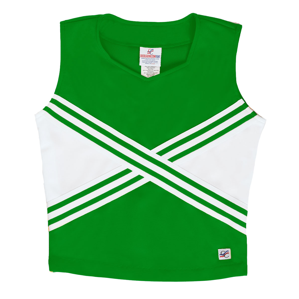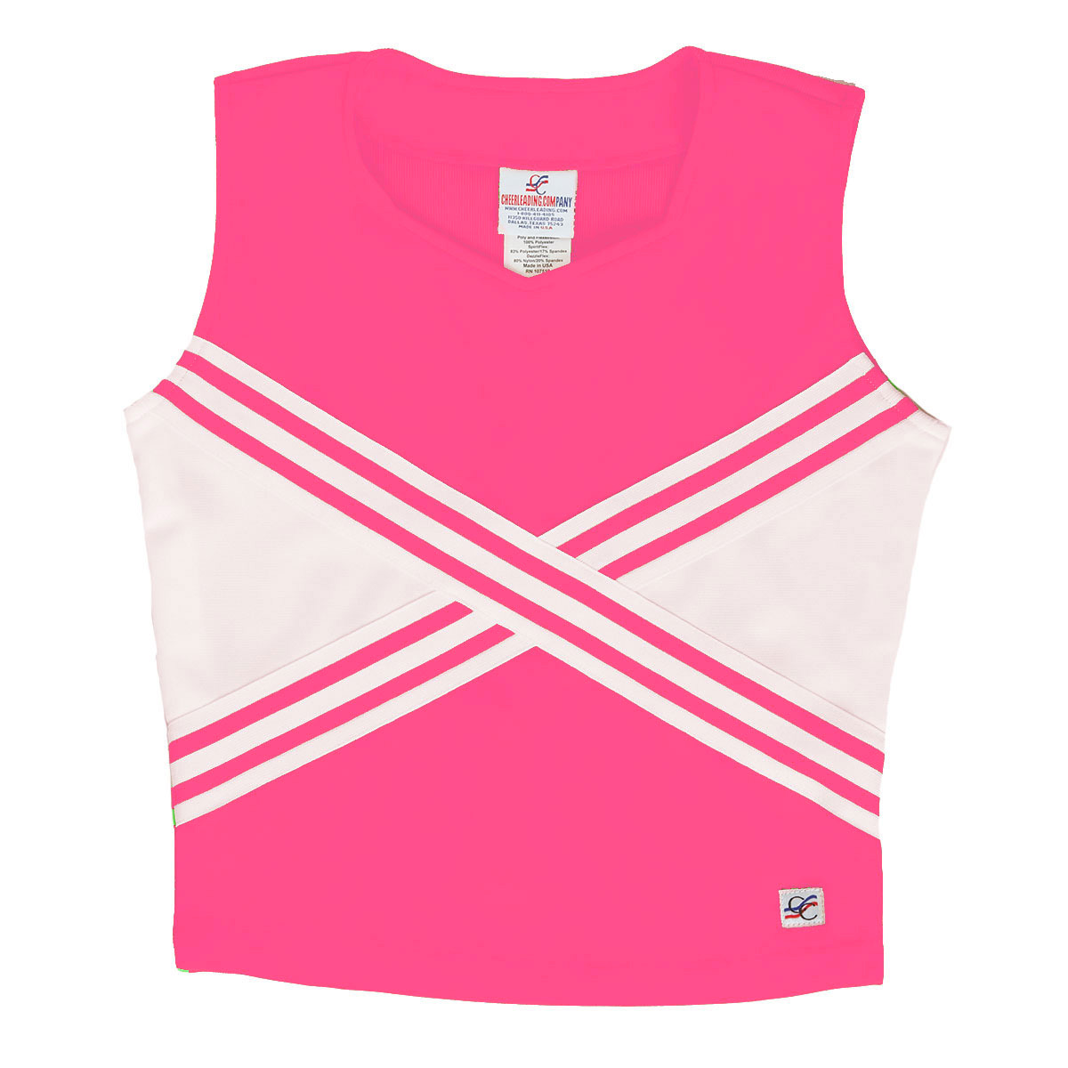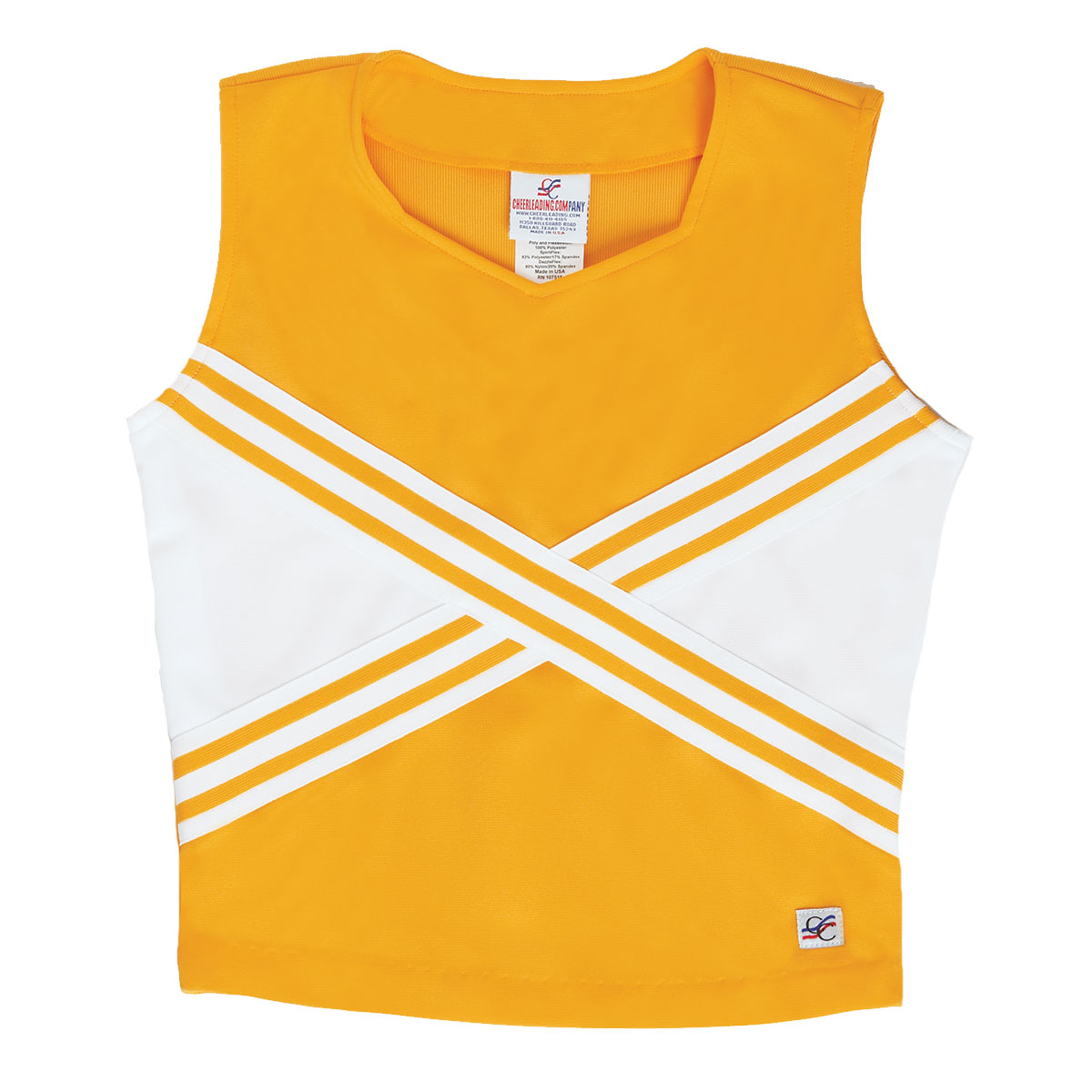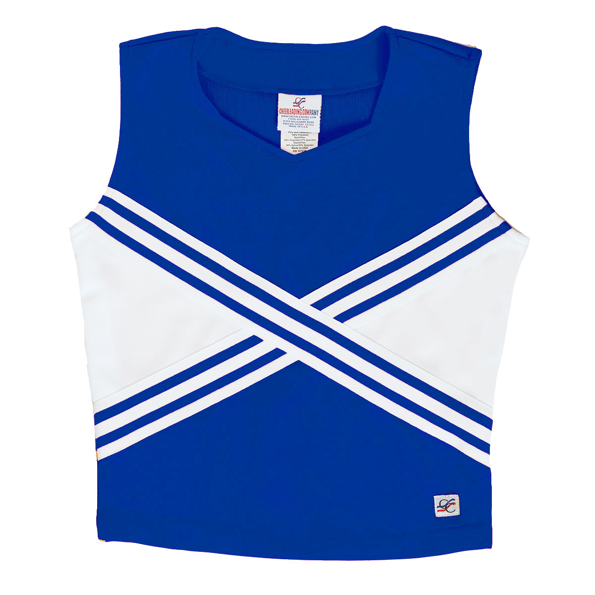 This classic cheerleading uniform shell top has a Sweetheart neck with X-front design and side insets.