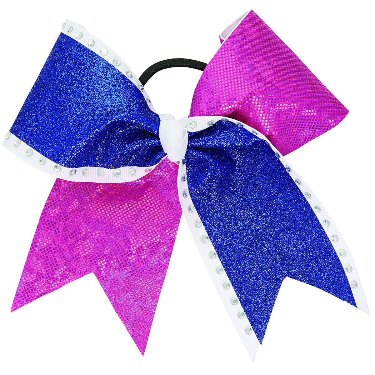 To maximize the lifespan of your bow, secure the hair in a separate ponytail holder or clip first before adding your cheer bow. This will help prevent overstretching.