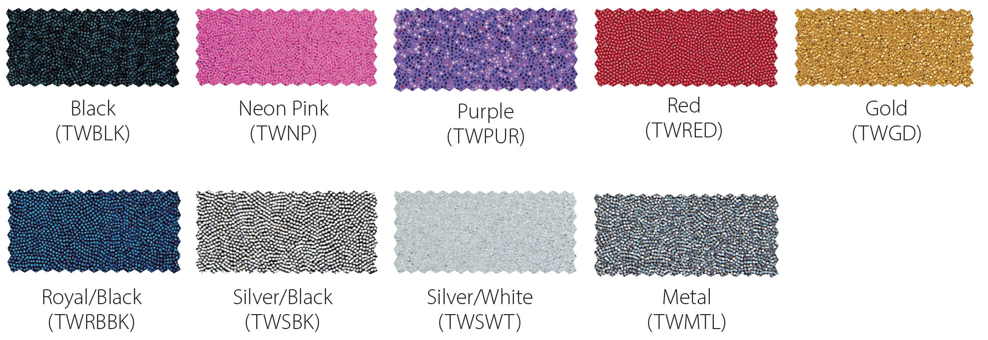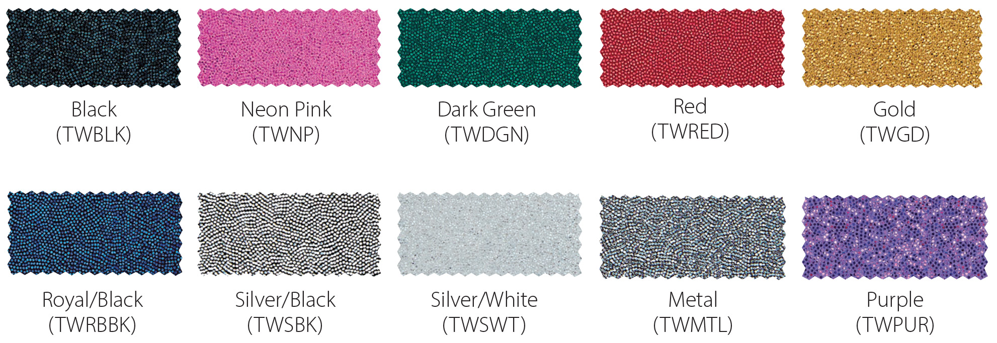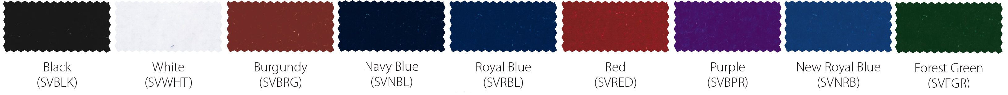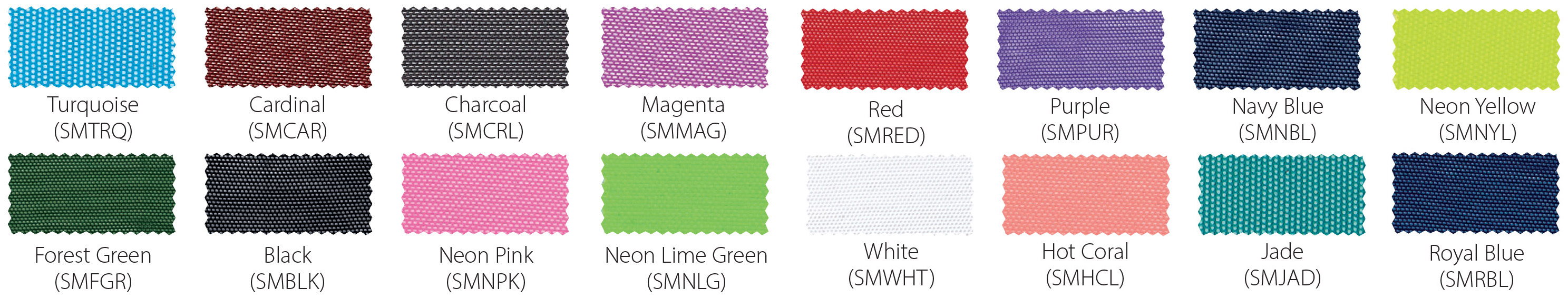 *Due to printing limitations, colors displayed here may not be a true color match. Due to fabric limitations and differences in materials, colors between different types of materials may not be an exact match. We will be happy to provide fabric color swatches of our material for your use. Call us today at 214.343.3333 or submit our contact us form to discuss your team color options with a sales representative!