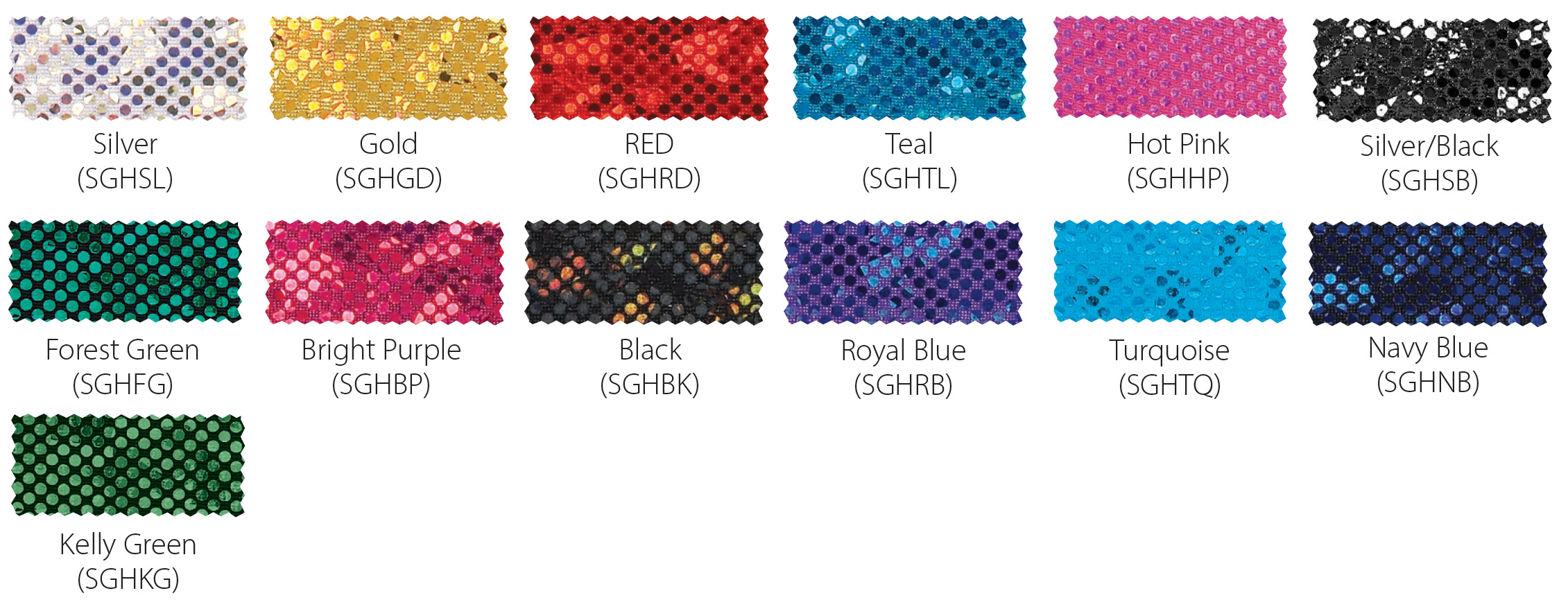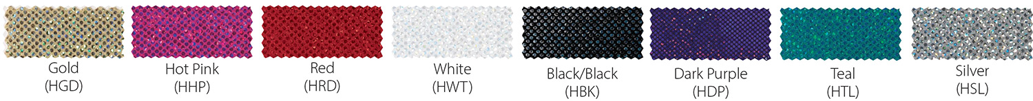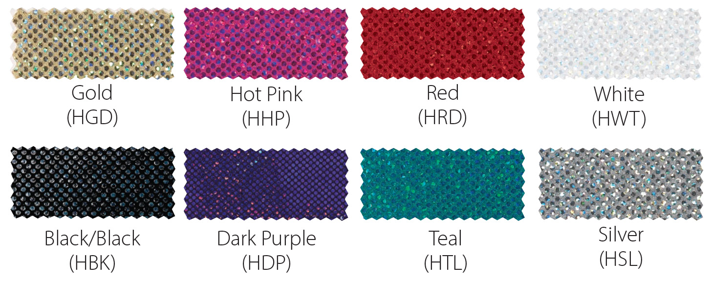 HoloFlex™ is a holographic, two-way stretchy nylon/spandex knit. HoloFlex™ may be added to All-Star and CC Dancewear uniforms at no additional cost, and to other uniforms for an additional $5.00 per garment. Lettering may be upgraded to HoloFlex™ with a stretchy backing for an additional $20.00 per emblem. HoloFlex™ lettering adds approximately 2 weeks manufacturing time.