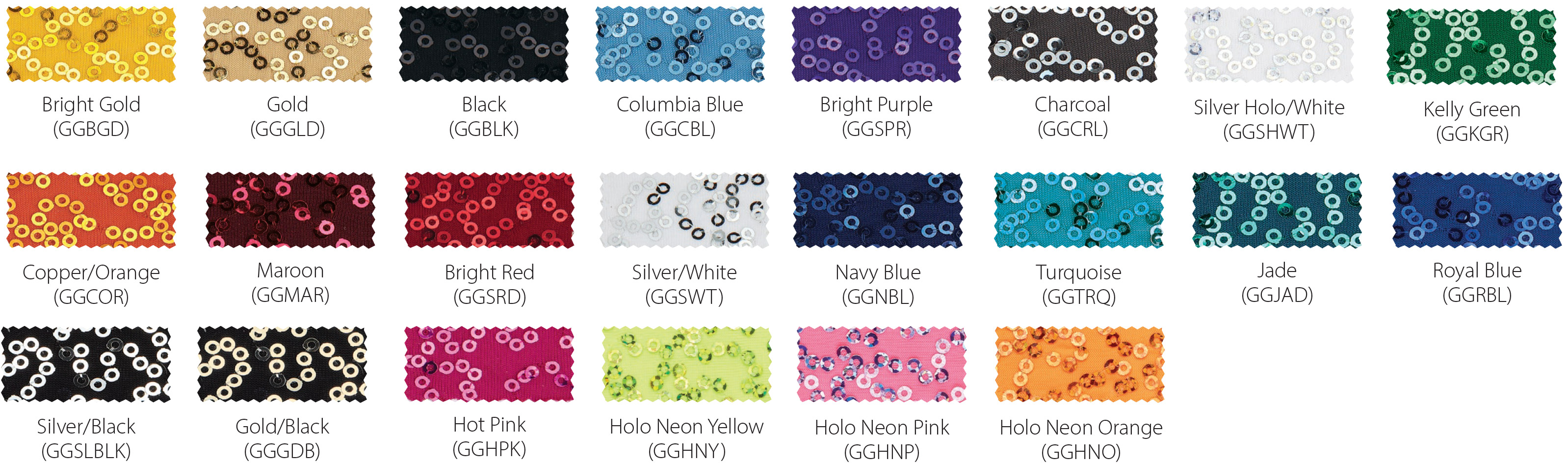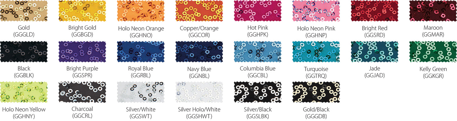 Gaga is a two-way stretchy nylon/spandex knit with sequins sewn to the fabric. Available only on styles that begin with SQ.