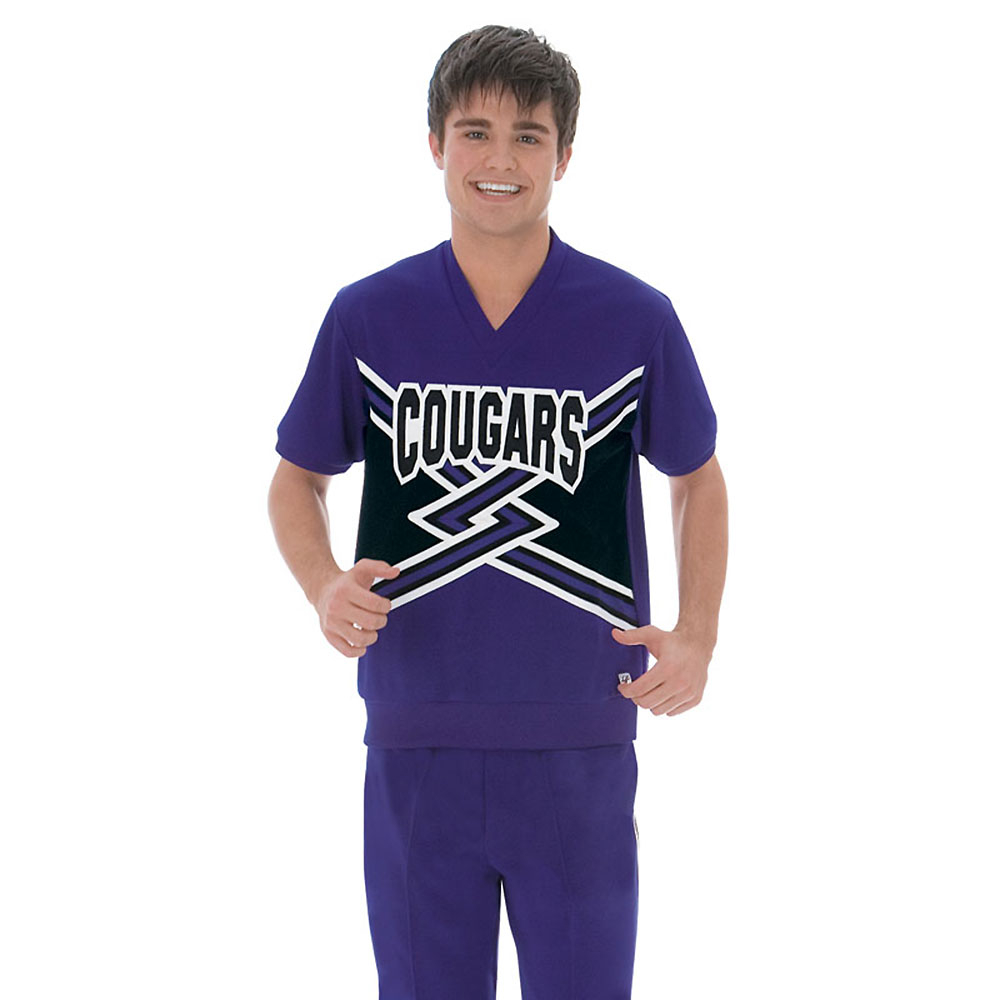 Men's poly V-neck top with rib waistband 9451P5; poly elastic waist pants with crease-stitch front 9200S5. Price includes top and pants; lettering priced seperately. Made-to-order items are not returnable or exchangeable.