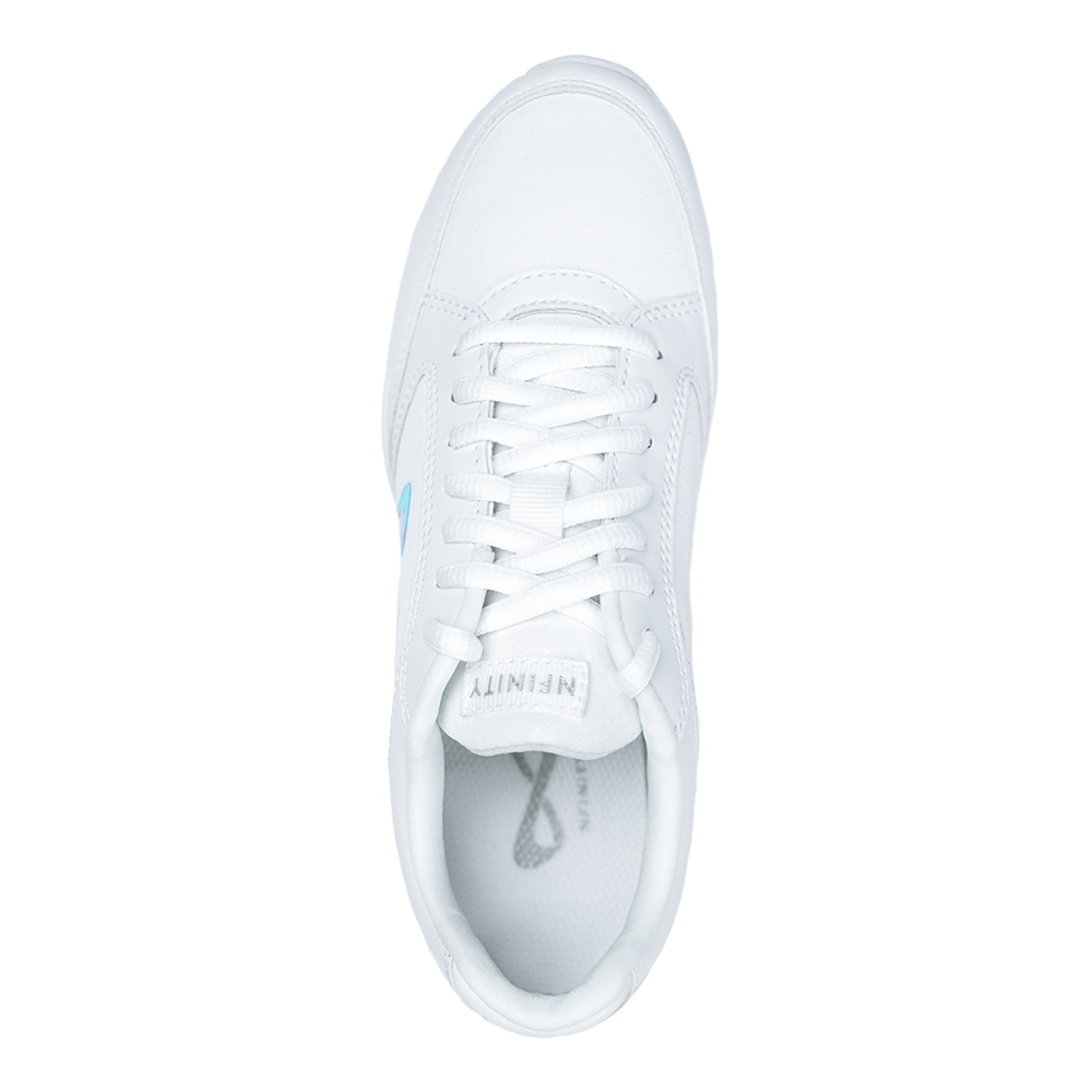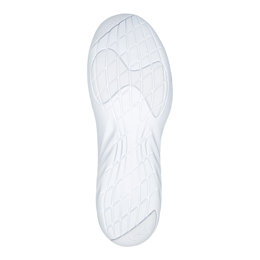 CLOSEOUT - Replaced with Nfinity Fearless (Grey Logo) Meet the Nfinity Fearless (Iridescent Logo), your ultimate companion from the gymnasium, to the football field, to the competition stage! These featherweight (4.4 oz) sideline shoes adapt to various surfaces giving you a comfortable, solid grip so you can be FEARLESS throughout your day. Comes enclosed in a standard shoe box (not an Nfinity carrying case)