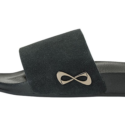After practice or running errands, you’ll want to slide into these simple and comfortable Nfinity slides. Leather upper bandage and contoured bottom to cradle your feet after a long day of practice. Flaunts a sparkle charcoal grey band with the iconic Nfinity logo on the side.