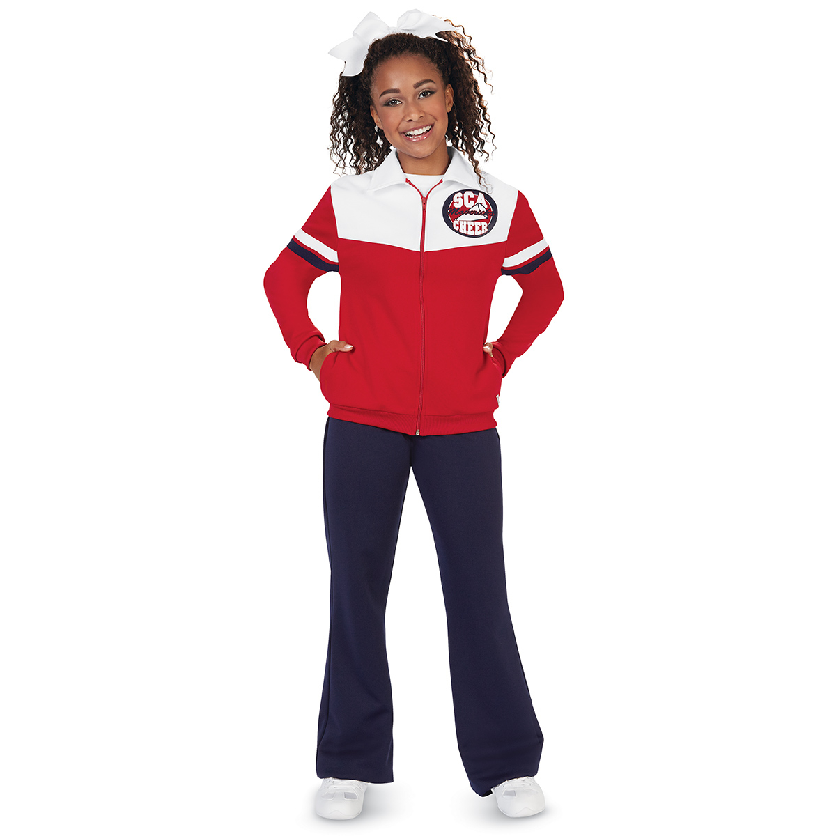 Made-to-order polyester warmup. Package includes polyester full-zip track jacket with side pockets 7354S61 and polyester boot cut pants 7208. Lettering priced seperately. Made-to-order items are not returnable or exchangeable.