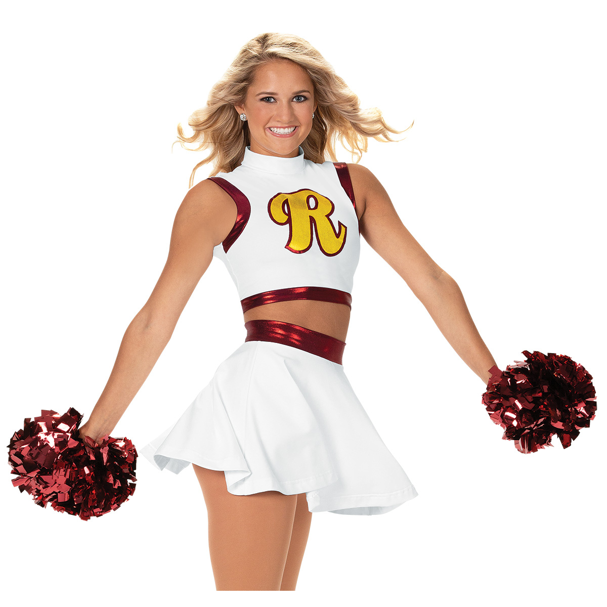 SpiritFlex mock turtleneck crop top SP23199Z; SpiritFlex elastic waist skirt CBSKCIR. Price includes top and skirt; lettering sold seperately. Made-to-order items are not returnable or exchangeable.