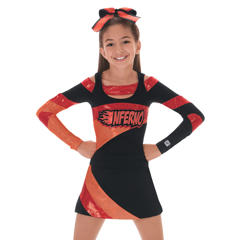 Boat neck strappy SpiritFlex long sleeve top SP2499K; SpiritFlex elastic waist mid-rise skirt SP65468E. Price includes top and skirt; lettering sold seperately. Made-to-order items are not returnable or exchangeable.