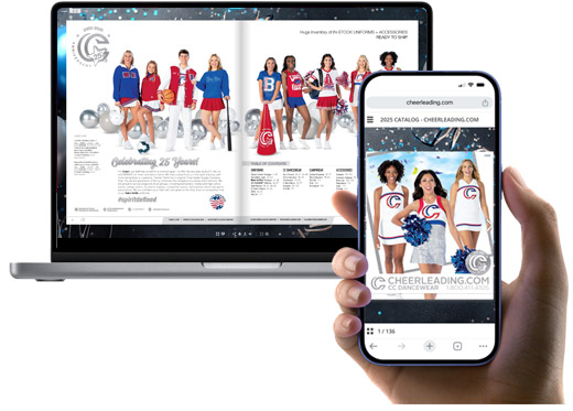 Check out our new Cheerleading.com catalog, packed with the latest uniforms, accessories, and spirit gear for the season! Whether you're wanting to upgrade your team's look or find performance-ready apparel, our catalog has everything you need to stand out and shine. Explore bold new designs, customizable options, and high-quality materials - perfect for every cheerleading or dance squad. View it now and take your game to the next level!