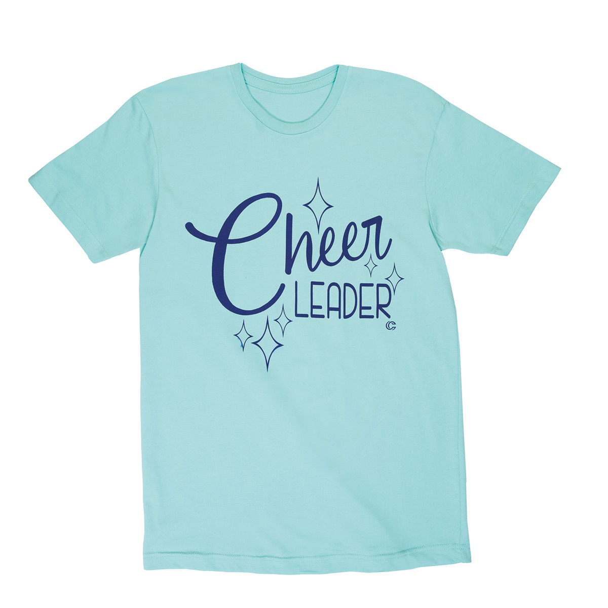 Closeout Design - While Supplies Last! Show your spirit in style & shine with this eye-catching cheer tee! Soft, comfy fit for cheer practice, competitions, or everyday wear. Complete your look with navy blue, grey or white knit practice shorts (CSS).