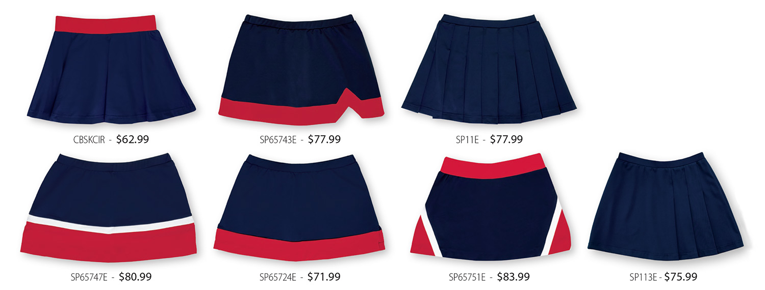 SpiritFlex Skirts - Updated Looks in Two-Way Stretch Poly/Spandex SpiritFlex.