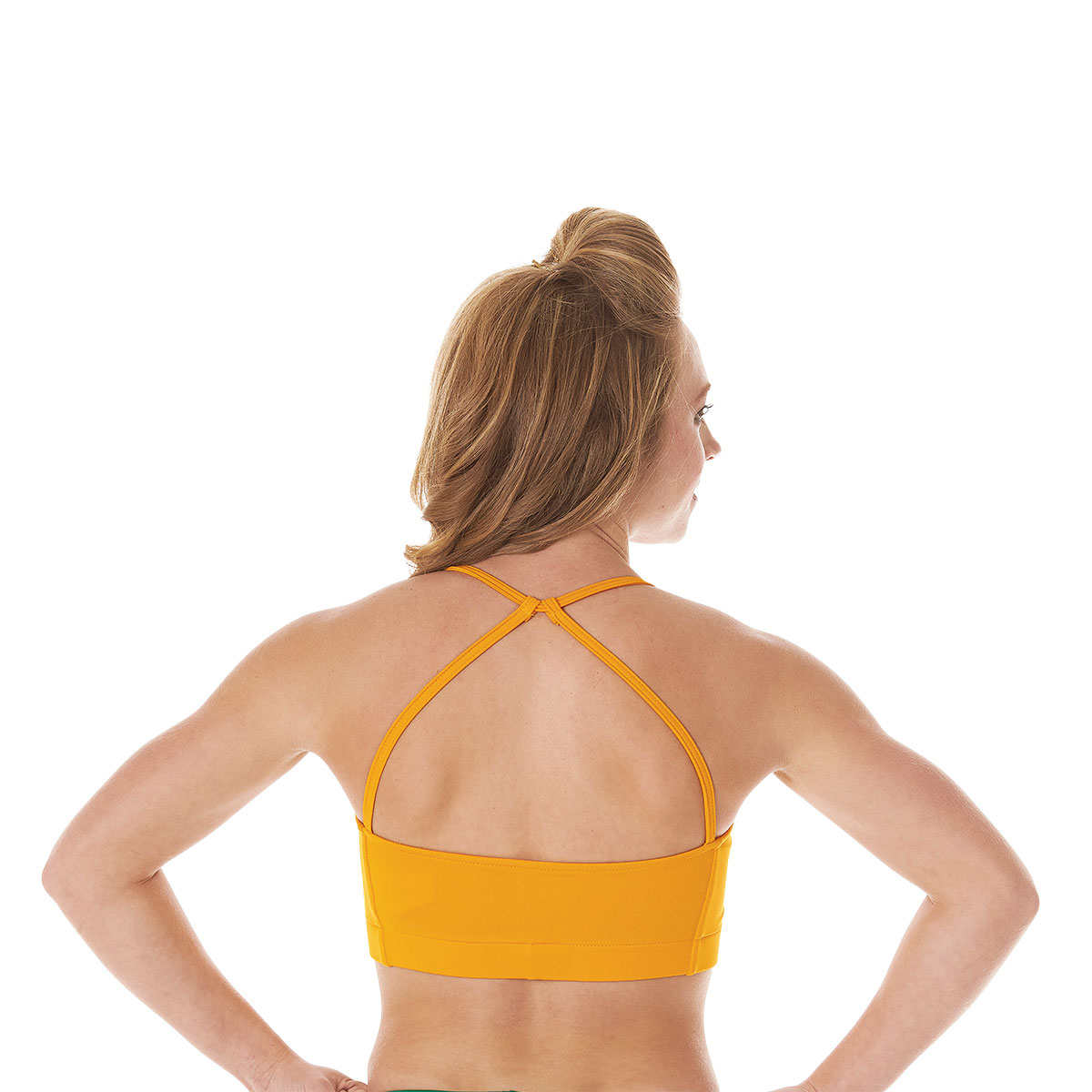 Made-to-order keyhole back sports bra, available in most specialty fabrics. Made in USA. Minimum order 6. Prior to ordering, please view our current estimated manufacturing times. Made-to-order items are not returnable or exchangeable.