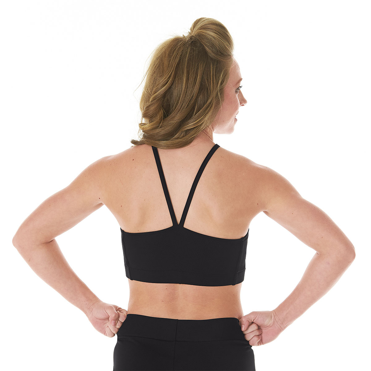 Made-to-order sports bra, available in most specialty fabrics. Made in USA. Minimum order 6. Prior to ordering, please view our current estimated manufacturing times. Made-to-order items are not returnable or exchangeable.