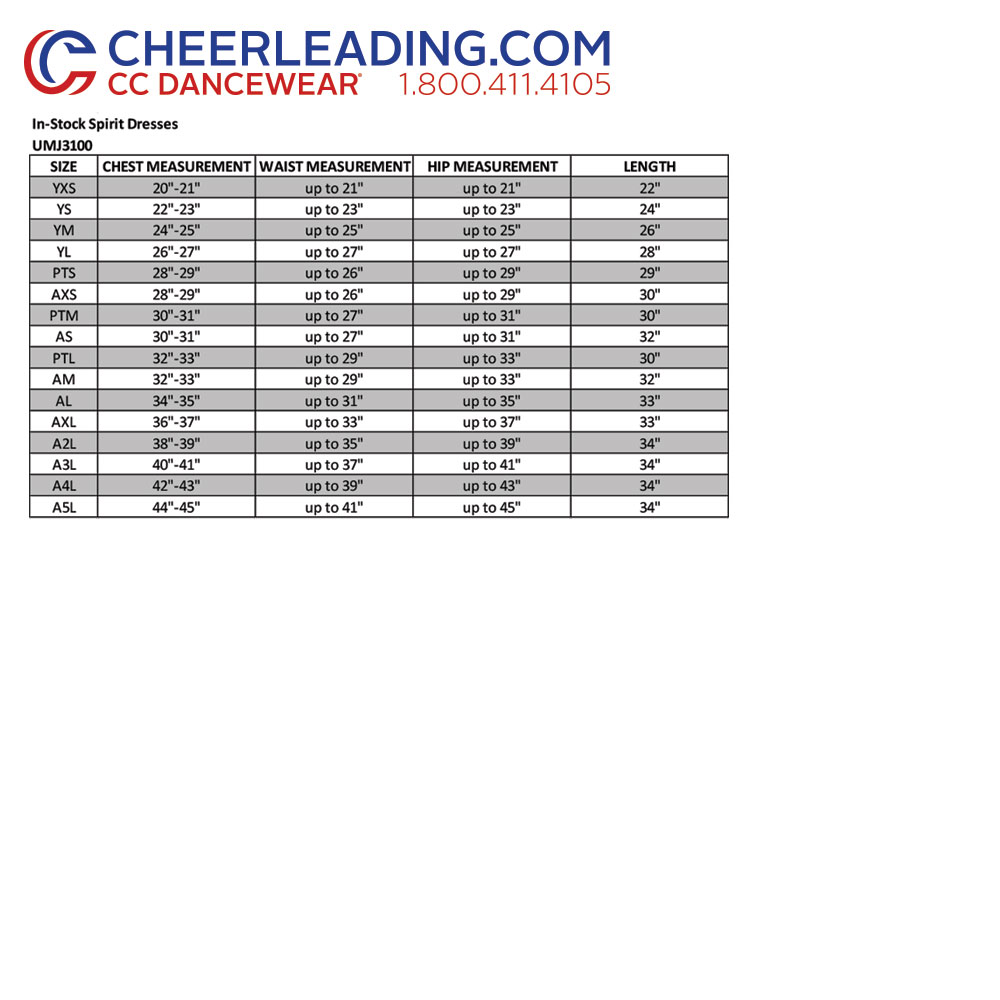Cheerleading Company offers a great way to get your uniforms even faster! Our In-Stock Uniforms are available to ship immediately and can be ordered online! Each In-Stock Uniform is made in the USA of the same high-quality 100% polyester mock mesh fabric as our custom-made spirit dresses.