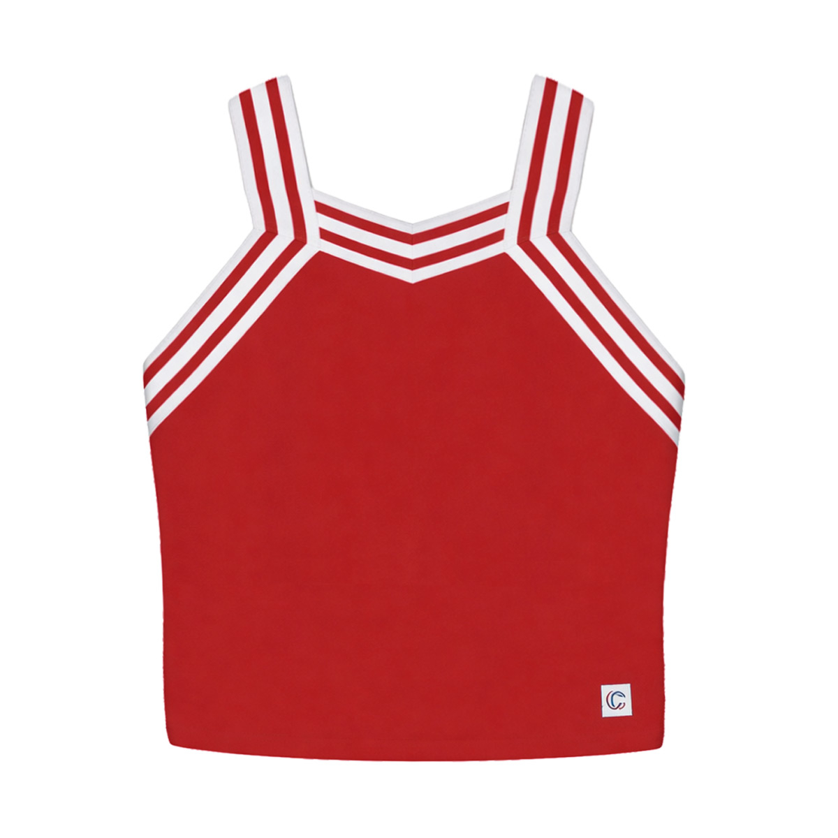 NEW modern cheer uniform shell featuring a flattering sweetheart neckline with bold armhole striping and a solid Flexstretch® back for comfort and performance. This updated design delivers a polished, athletic look at an exceptional value.